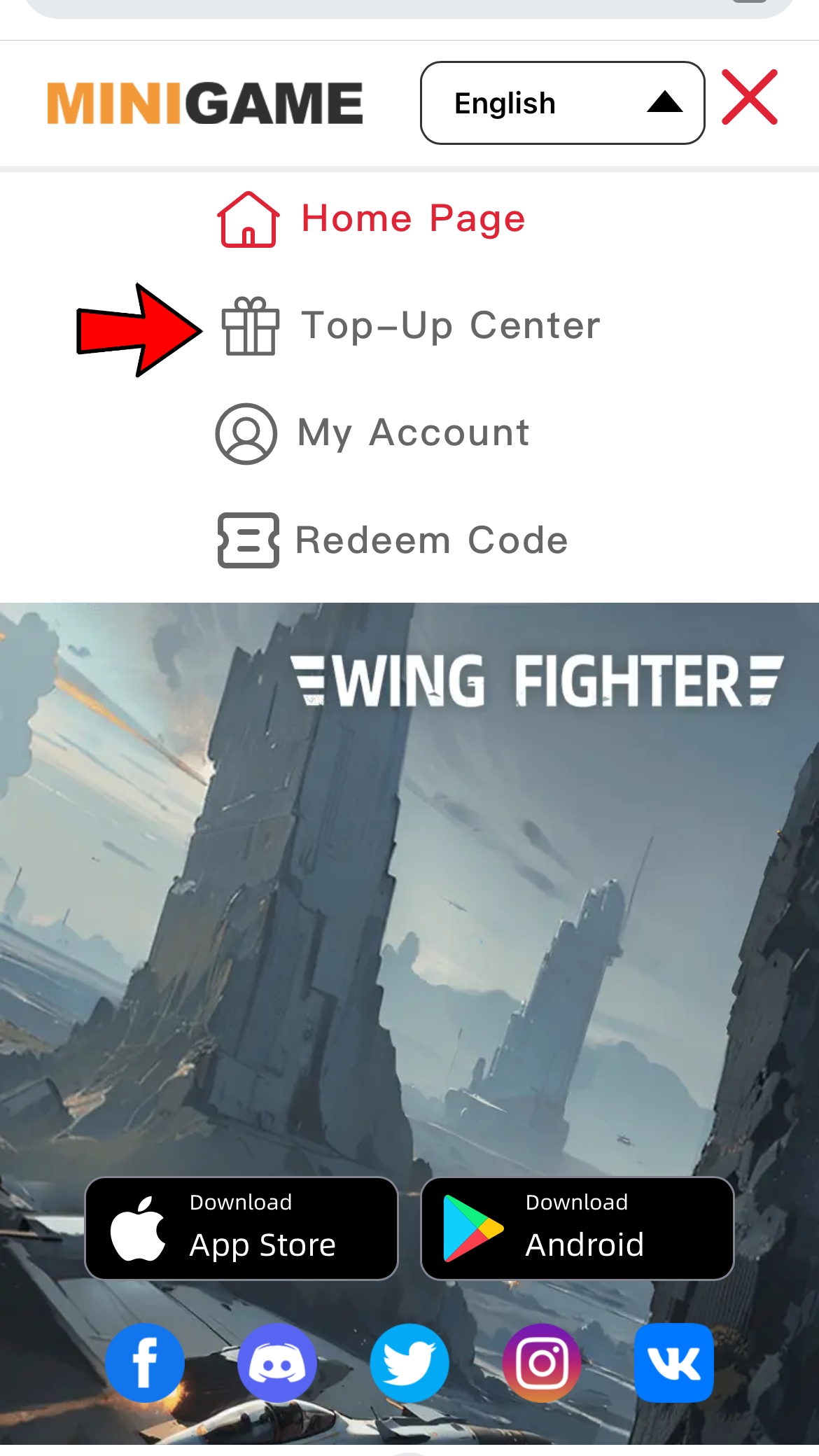 2. Log in to the official website account, click the [≡] at the upper right corner, select “Top-Up Center”. The first time you log in to the official website, you need to register your official account. Official account ≠ game account. (Please remember your official website username.)