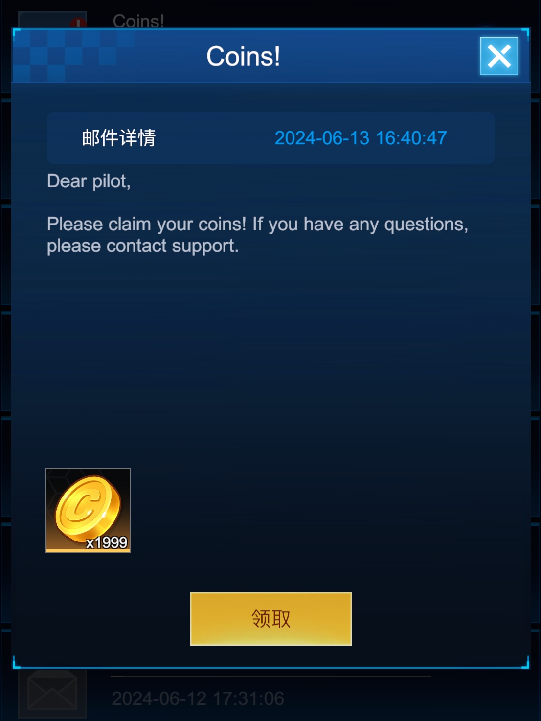6. After successful recharge, you will receive the contents of the gift pack via in-game mail (take USD19.00 slot as an example).