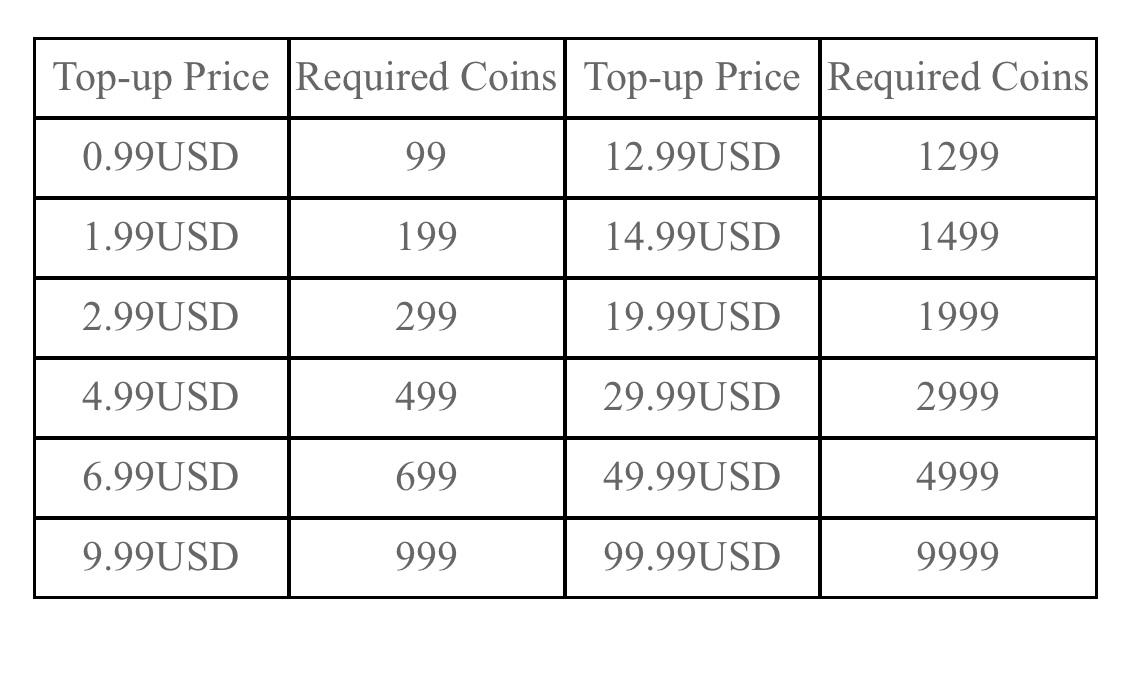 7. After obtaining Coins, it's available for you to use Coins to offset the payment at any payment place in the game (You cannot use Coins when you hold insufficient Coins to buy the Top-Up, you can check the number of Coins you hold in your backpack in game.)